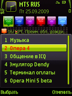 вызывается правой или левой софт-клавишей, подобно меню Пуск на ПК